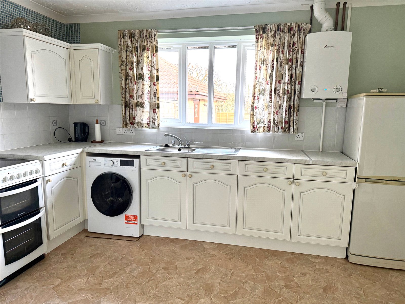 Kitchen/Breakfast Room: 12'8" x 9'7" With a radiator, a range of base and wall cupboard units and incorporating space for an electric cooker, space and plumbing for a washing machine and space for a fridge freezer. Eye-level cupboard units, wall-mounted Worcester Bosch Green Star gas-fired boiler supplying domestic hot water and central heating to radiators. Double glazed window to the rear.