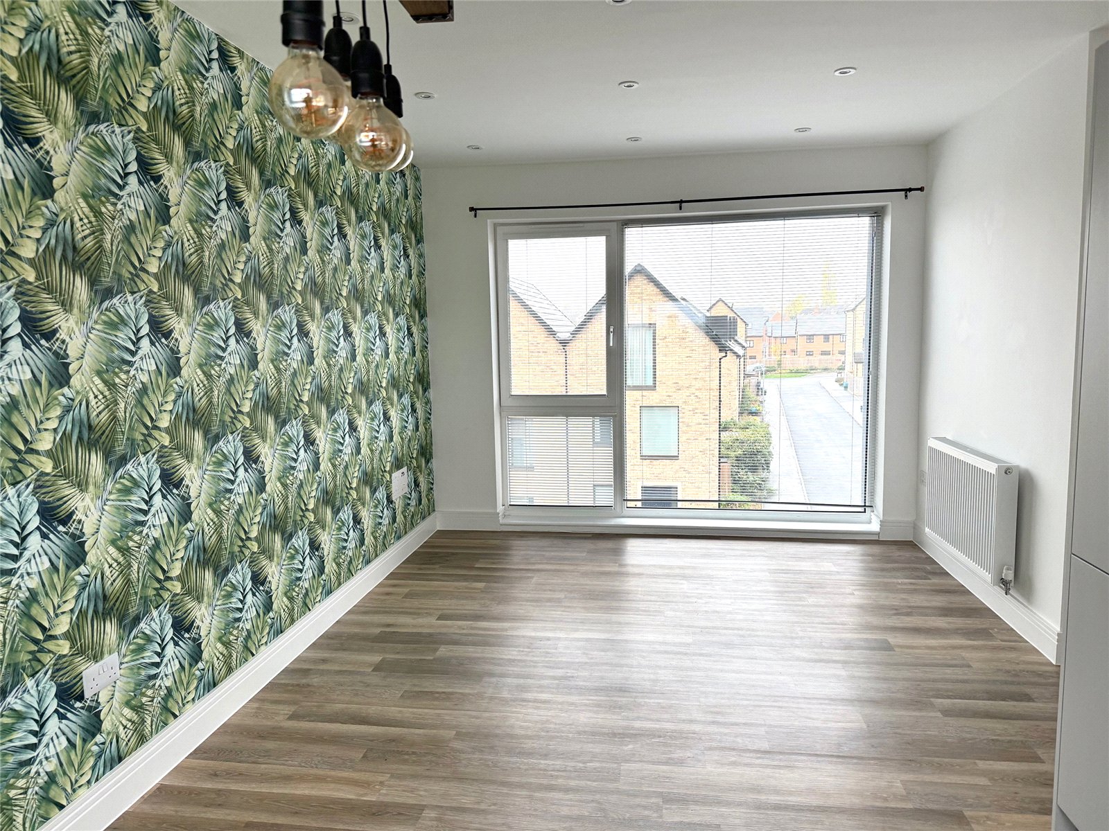 Kitchen/Living Room: 21'5"x14' maximum. With a large double glazed picture window to the front, two radiators and a comprehensive range of light grey finished fitted units with Quartz work surfaces and comprising a stainless steel sink with mono bloc mixer tap, adjacent work surfaces with drawers and cupboards beneath and incorporating a Bosch fan assisted electric oven, microwave, four ring induction hob, fridge, freezer and full size dishwasher. Wall cupboard units incorporating an extractor hood. Double glazed window to the rear.
