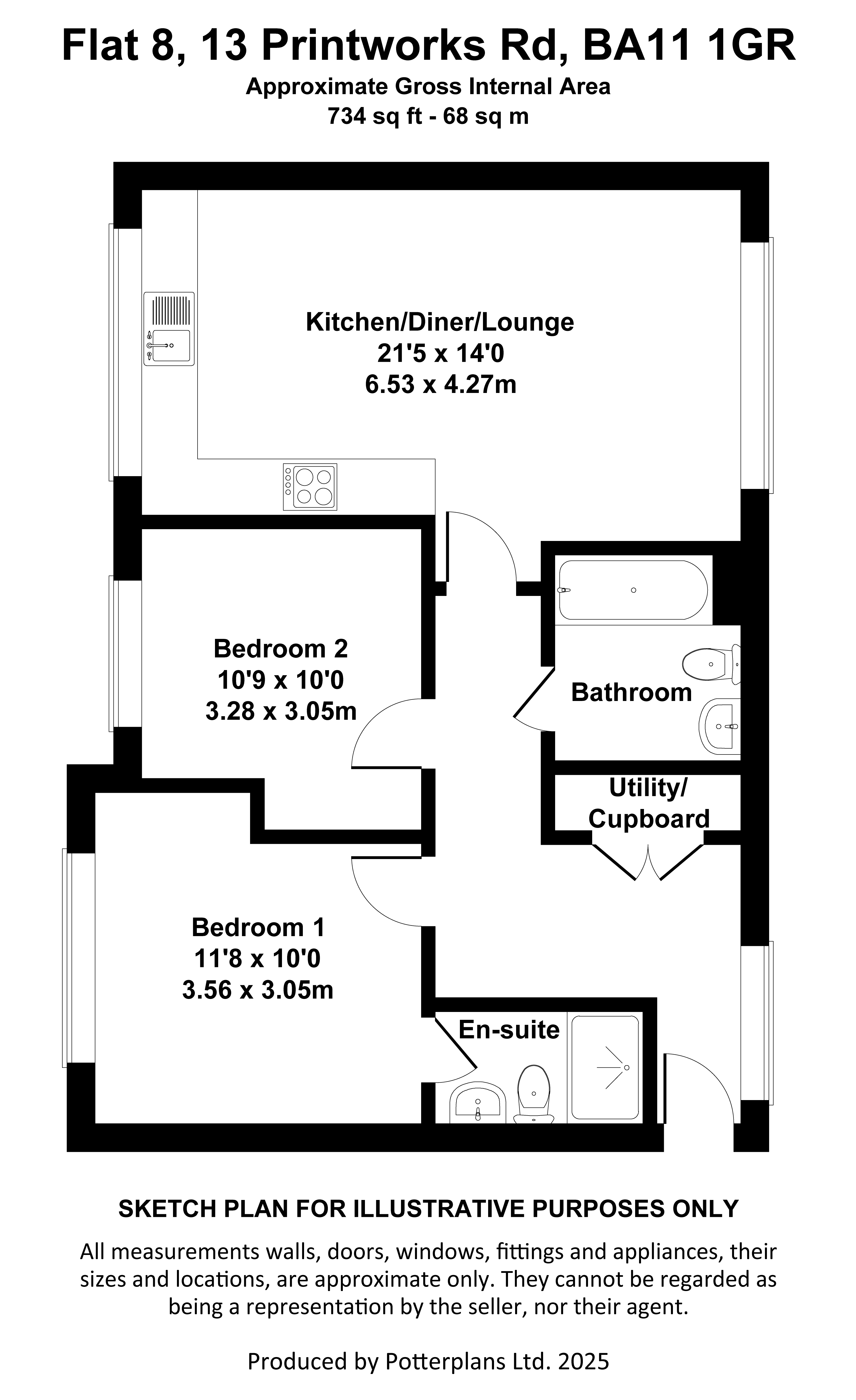 Description: Believed to have been built approximately four years ago and benefitting from the remainder of the 10 year NHBC warranty this stylish second floor apartment has high ceilings and a large full height picture window to the open plan living space which incorporates ample space for seating and a breakfast table and incorporates a comprehensive range of fitted kitchen units with integrated appliances including an oven, microwave, induction hob, fridge, freezer and full sized dishwasher. A large utility cupboard off the entrance hall provides storage space and space and plumbing for a washing machine and tumble drier. Both bedrooms are of a double size with the principal incorporating an en-suite shower room which is in addition to the family bathroom. Providing an excellent lock up and leave the property has a single parking space and is sold with the benefit of no onward chain.