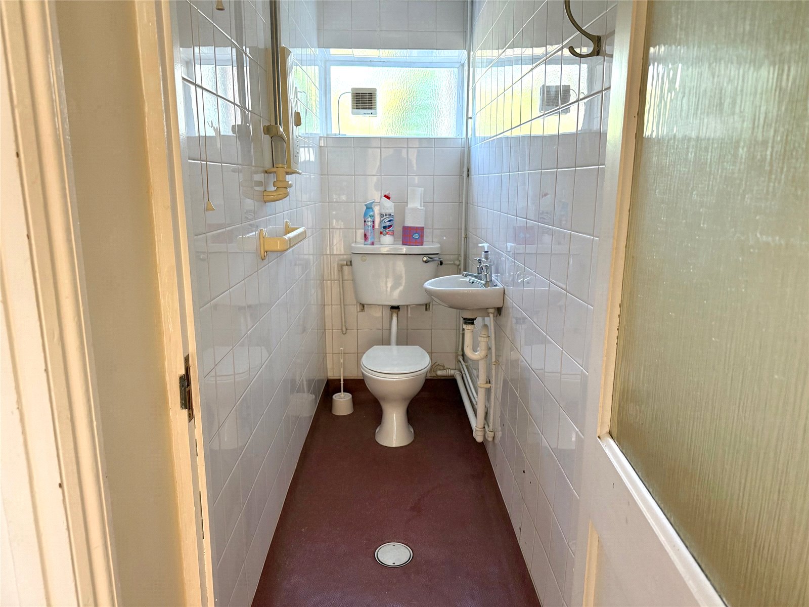 Cloakroom/Wet Room: With a low level WC, wash basin and a wall mounted electric shower.