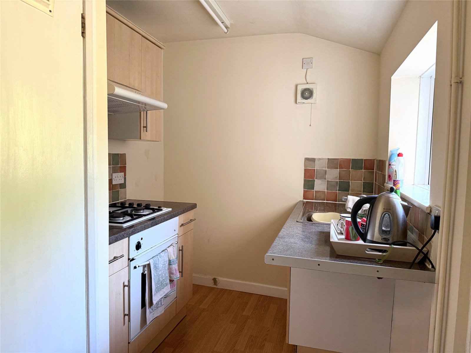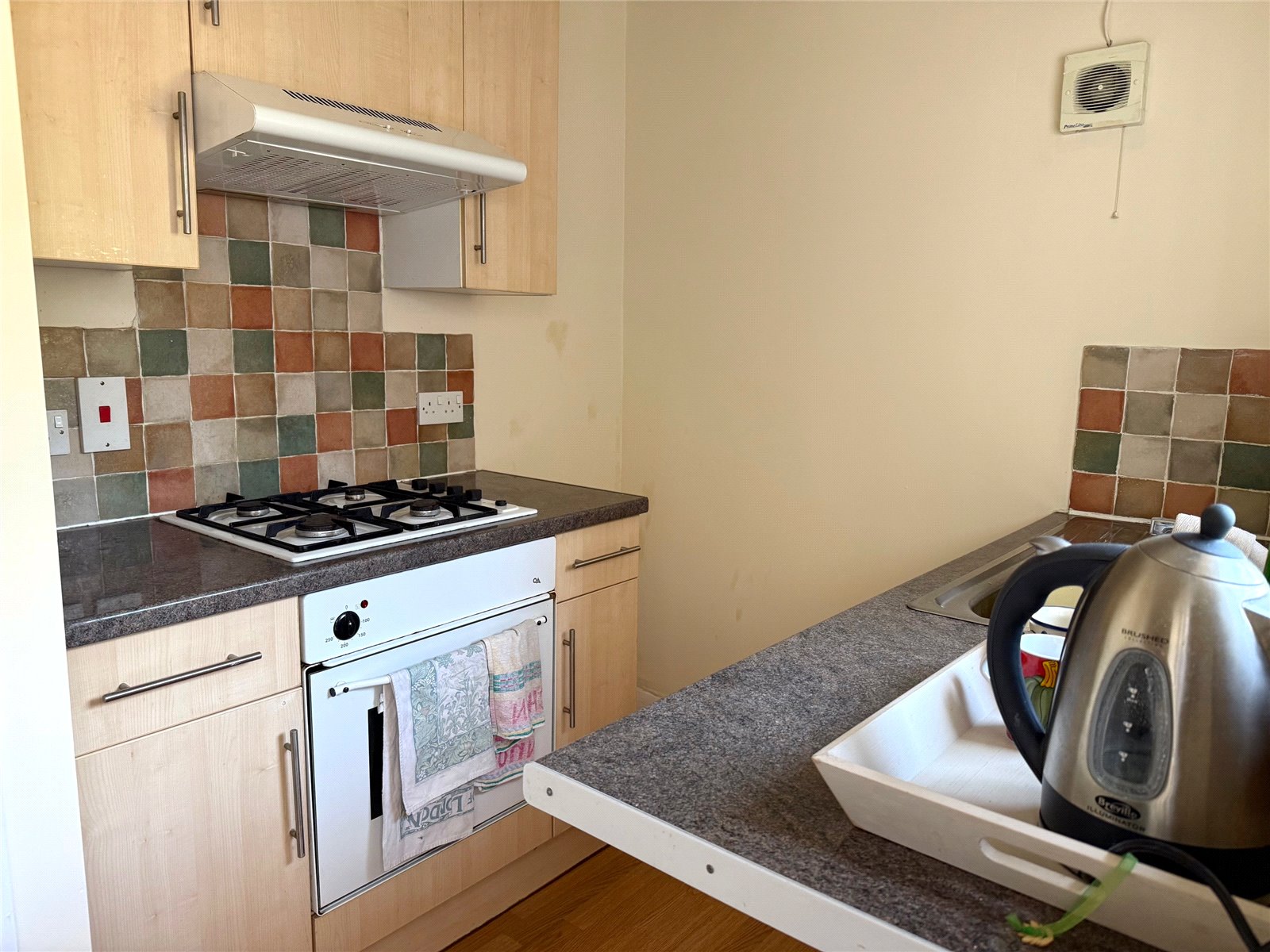 Kitchen: 8'9"x 6'6" With a stainless steel single drainer sink, base cupboard units with an electric oven and gas four ring hob, eye level cupboard units incorporating an extractor hood, larder cupboard, double glazed window to the side and door to the rear garden.