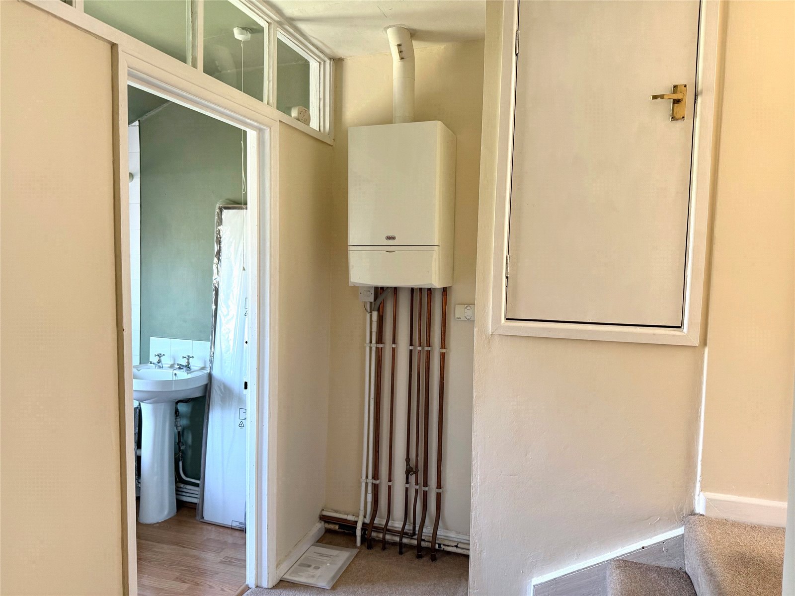 Split Level Landing: With a door and steps leading to the lower rear area with a storage cupboard and a wall mounted Alpha gas fired boiler supplying domestic hot wate and central heating to radiators.