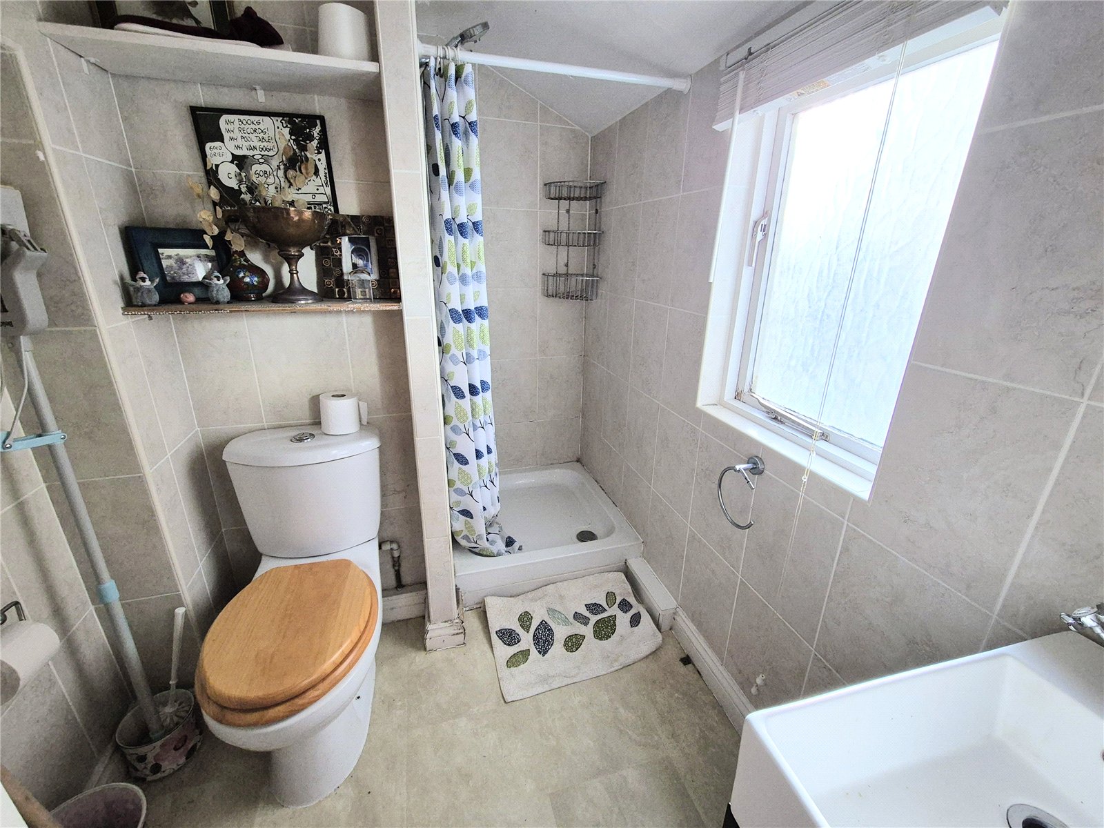 Accessed directly from the bedroom area. The walls are fully tiled and comprises a low level WC, Mira electric power shower, electric heated towel rail, extractor fan, and electric fan heater.
