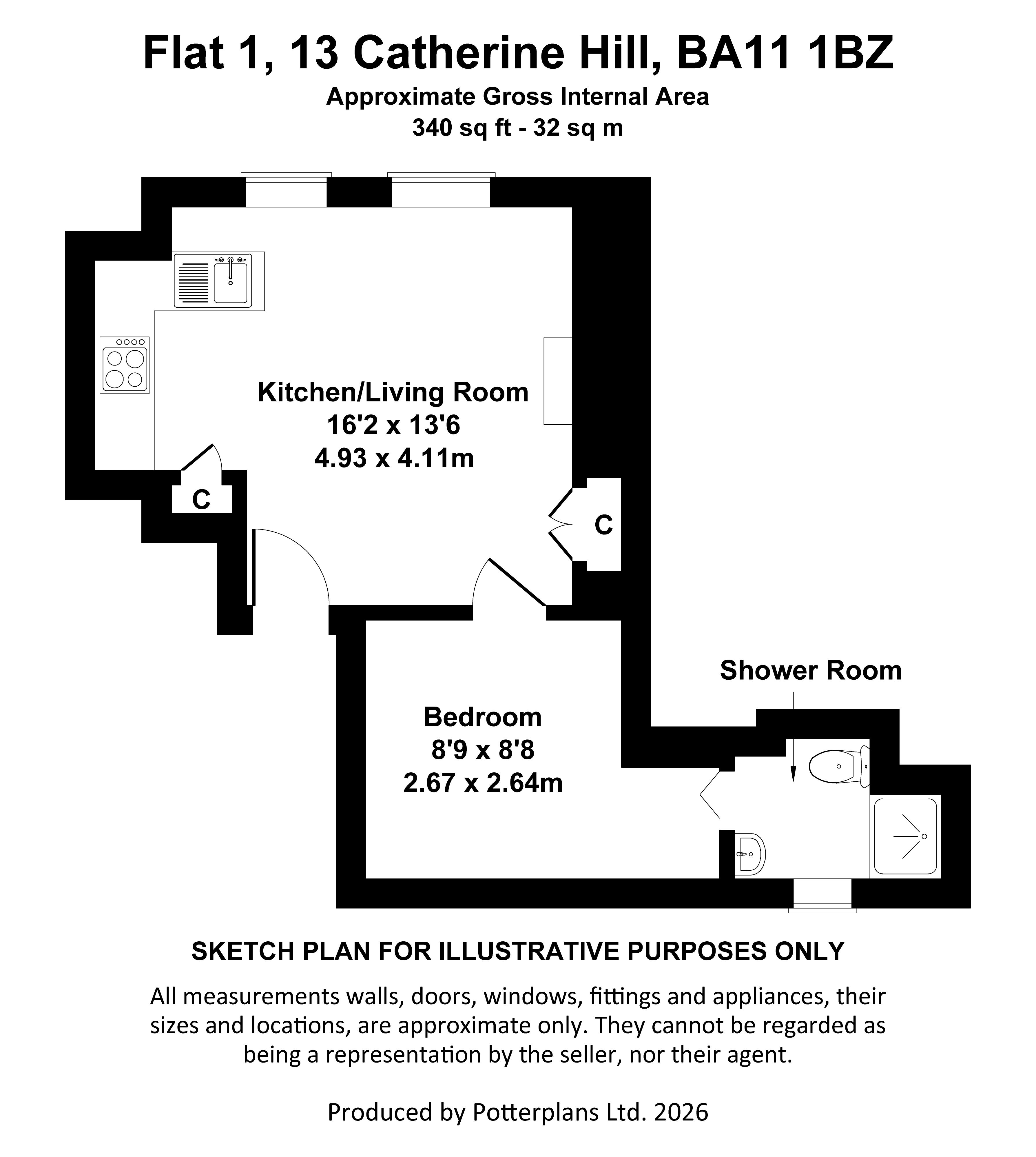 Characterful one bedroom first floor apartment *Electric heating throughout *Open plan kitchen living dining space*Ensuite bathroom *Period features including exposed beam, sash windows and decorative open fireplace *Central town location accessed from Catherine Street.