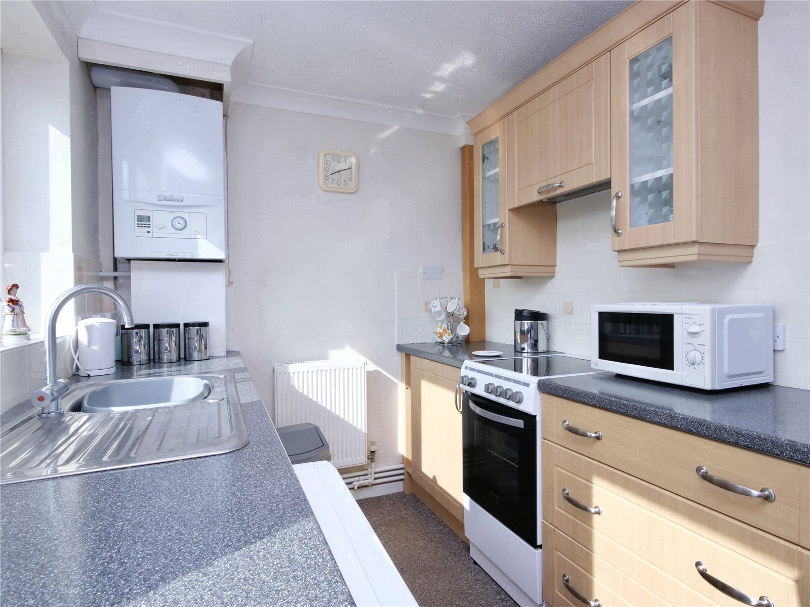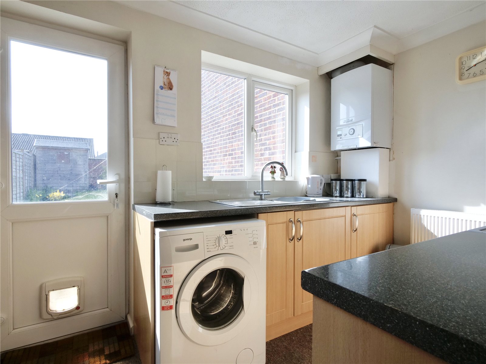 Kitchen: 11'9" x 7'0" With a range of light wood- effect fitted units with contrasting worksurfaces comprising a stainless steel single drainer sink with Monobloc mixer tap, adjacent worksurfaces with drawers and cupboards beneath incorporating a slot-in electric cooker, space for a fridge, freezer and space and plumbing for a washing machine. Wall-mounted Vaillant gas-fired combination boiler supplying domestic hot water and central heating to radiators, double glazed window and half-glazed door to the rear.