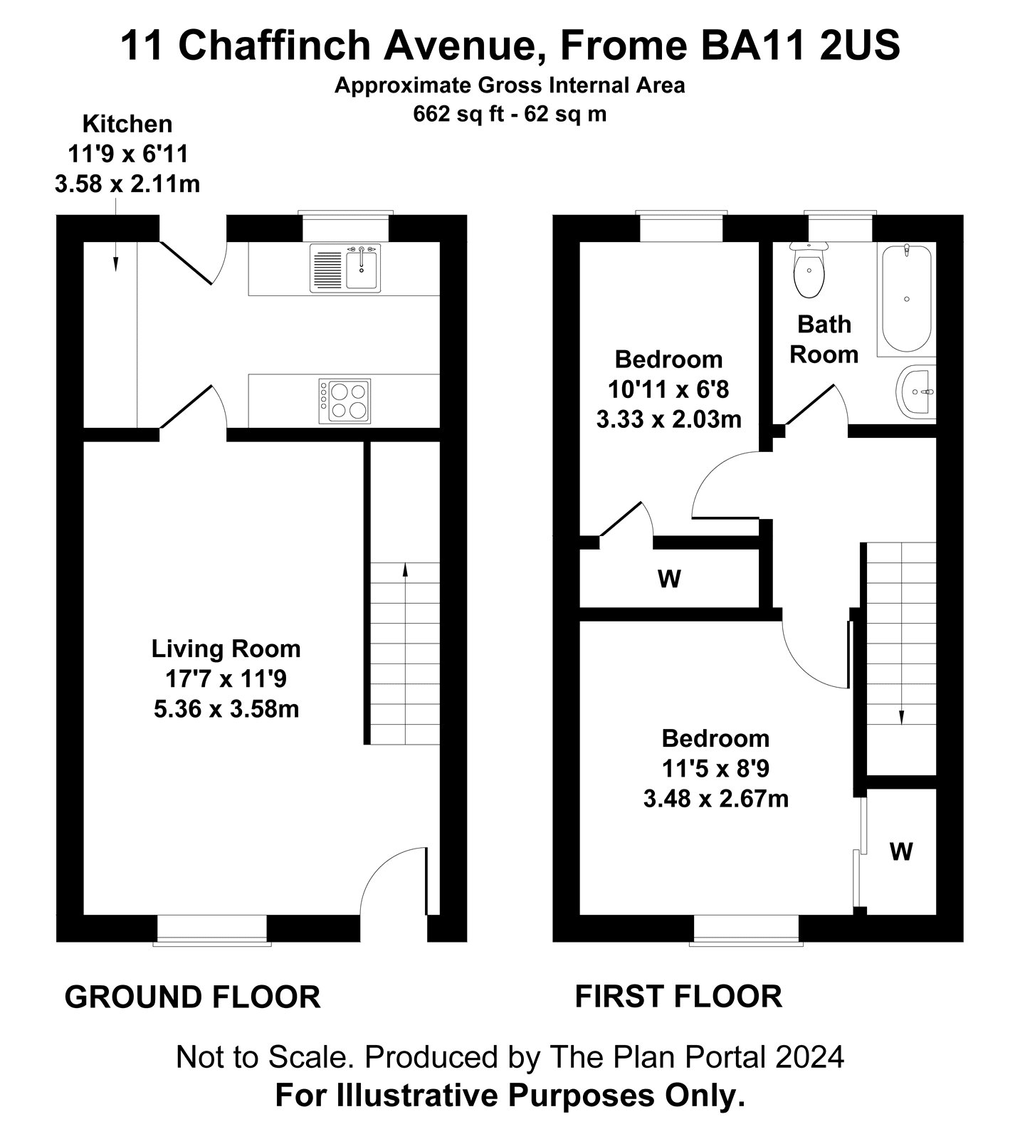Bedroom Two: 11'0" x 6'8" With a radiator, double glazed window to the rear and a built-in wardrobe with fitted shelves.