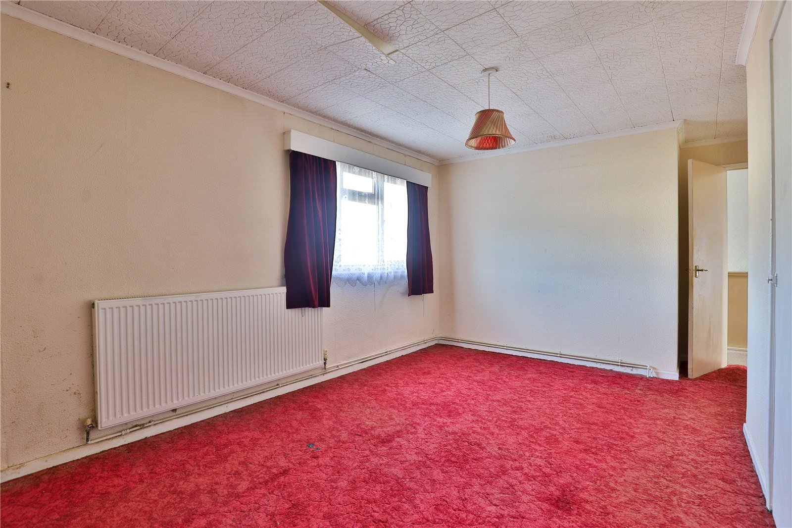 Bedroom 1: With a walk-in cupboard, radiator and a double glazed window to the front.