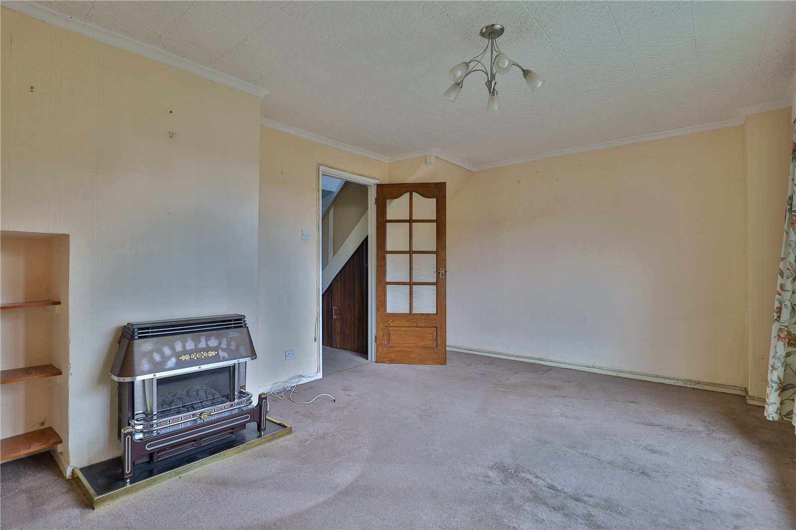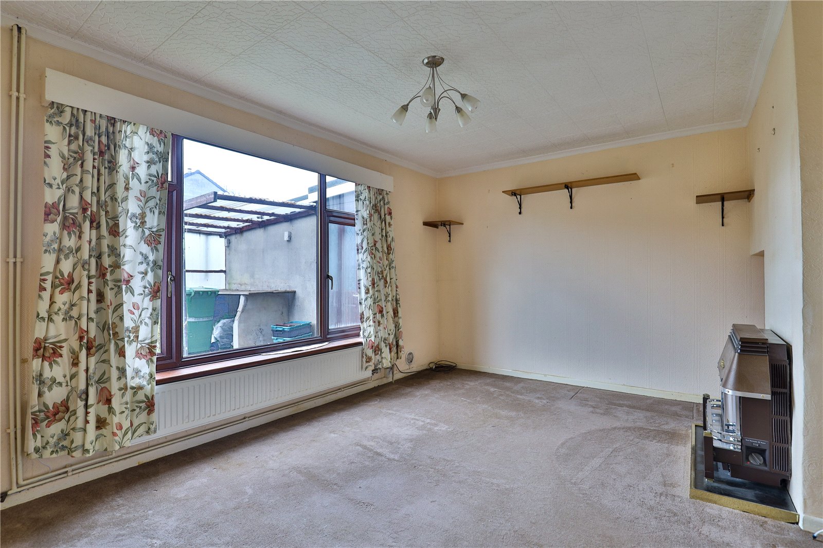 Lounge: With a radiator, gas fire (untested) and a large double glazed window to the rear.