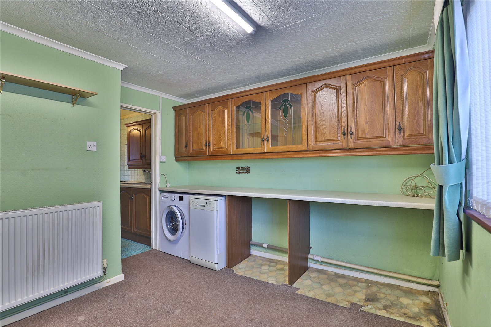 Kitchen/Breakfast Room: With base and wall cupboard units incorporating space and plumbing for a washing machine and slimline dishwasher (both included), radiator and cupboard housing a Worcester gas fired boiler supplying domestic hot water and central heating to radiators. Double glazed window to the front and glazed door to: