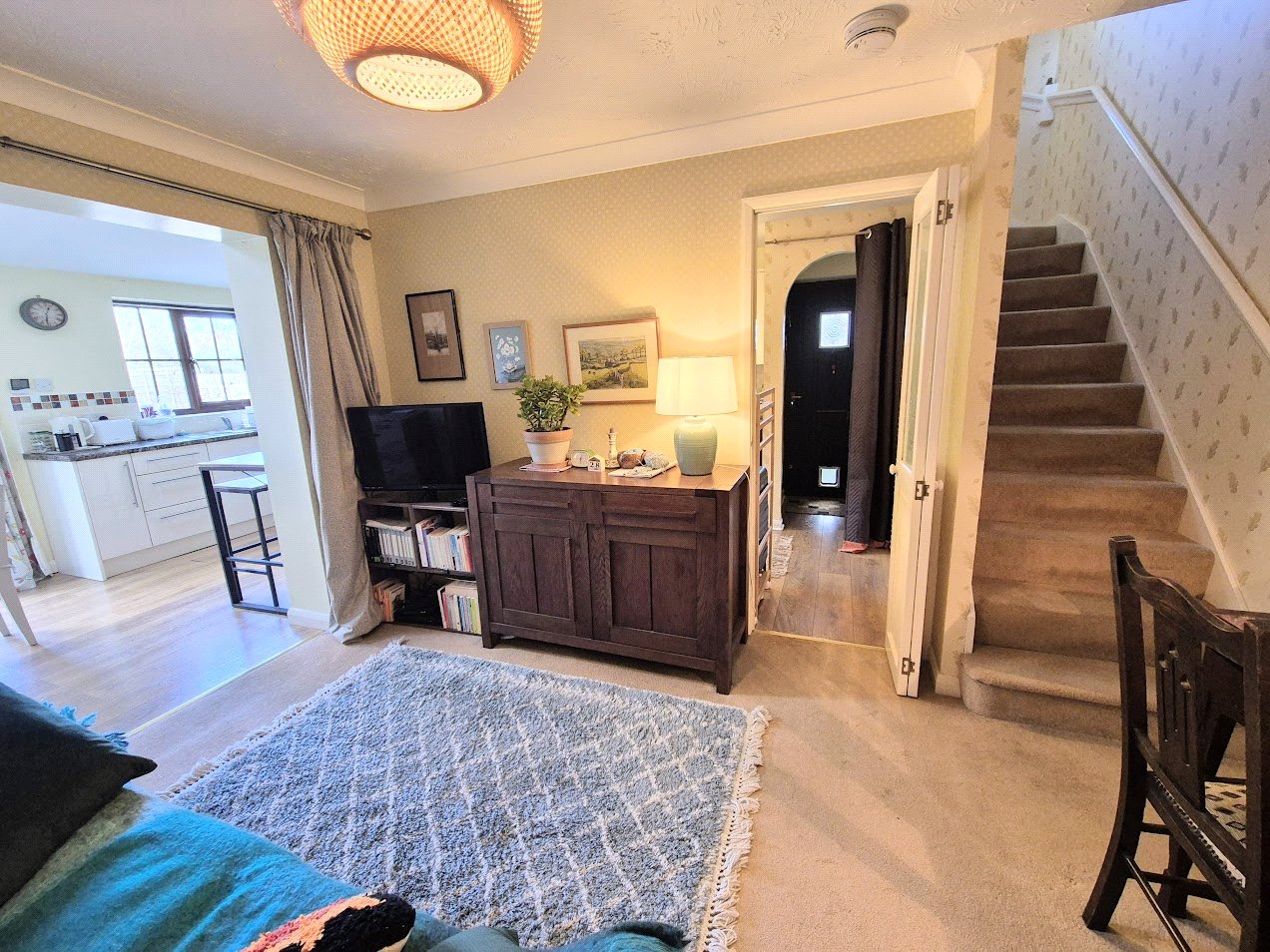 Entrance Hall: With a storage cupboard, vertical towel rail/radiator, bi-fold doors to the lounge and access through to the:
