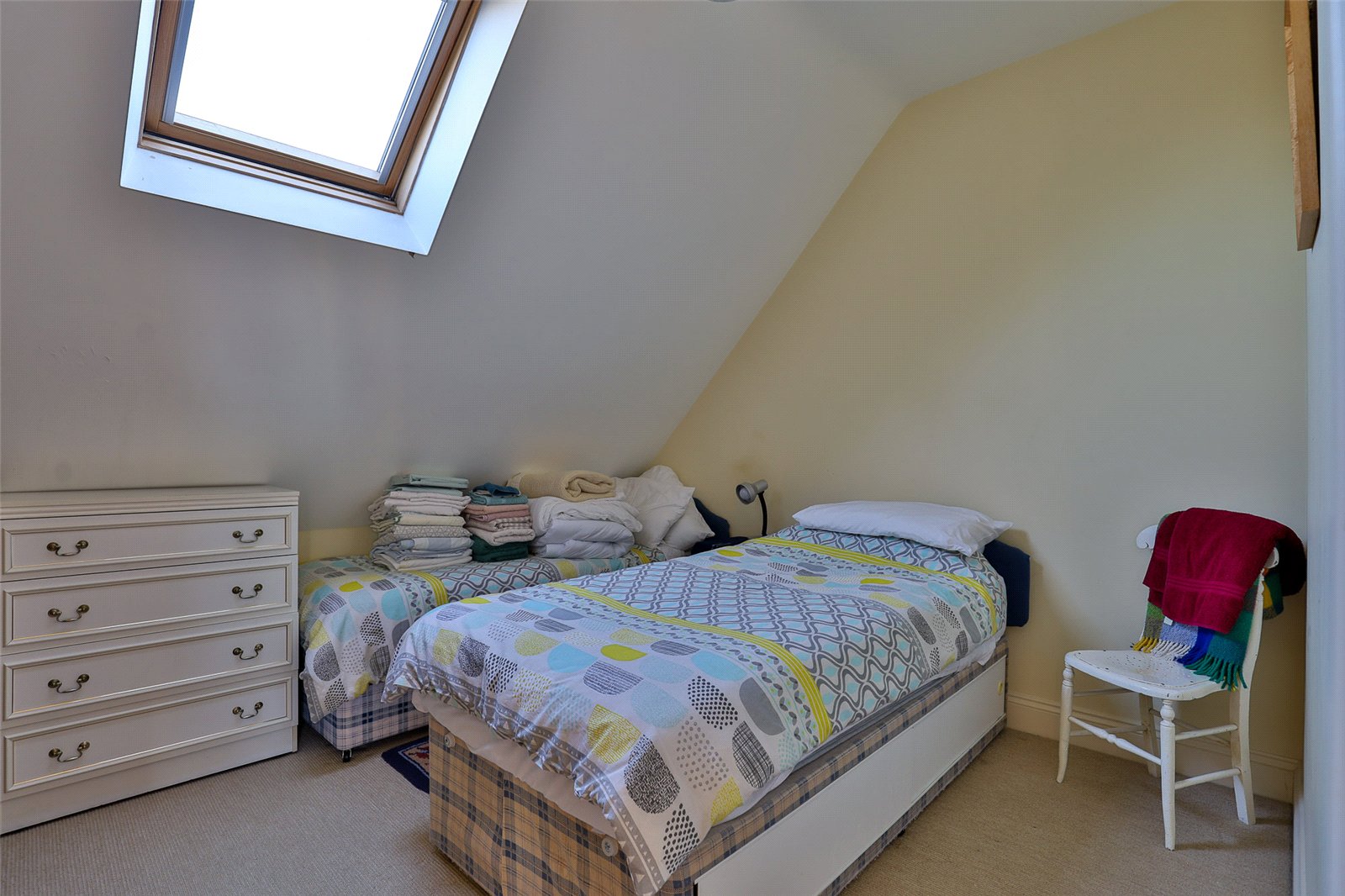 Principal Bedroom: With a double glazed window to the front, double glazed roof light to the side elevation, free standing wardrobes and door to: