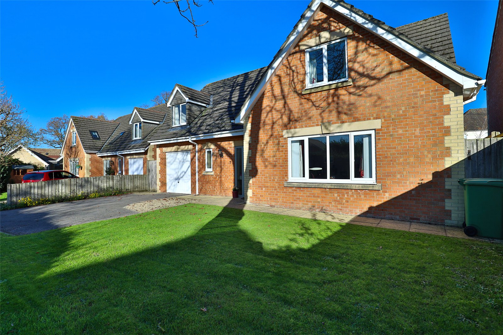 *A substantial four double bedroom detached chalet style property*Two reception rooms in addition to a generous size fitted kitchen/breakfast room*Principal bedroom with en-suite shower in addition to a separate family bathroom*Off road parking and a generous sized single garage, landscaped enclosed rear garden, no onward chain.,