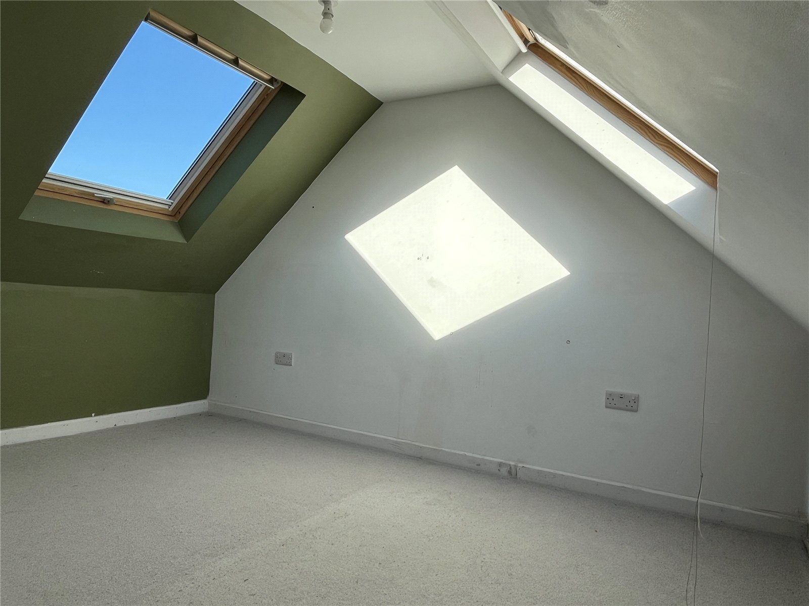 Principal Bedroom: 11'9" maximum x 10'7" maximum (floor measurements) With a radiator, two double glazed roof lights and access to: