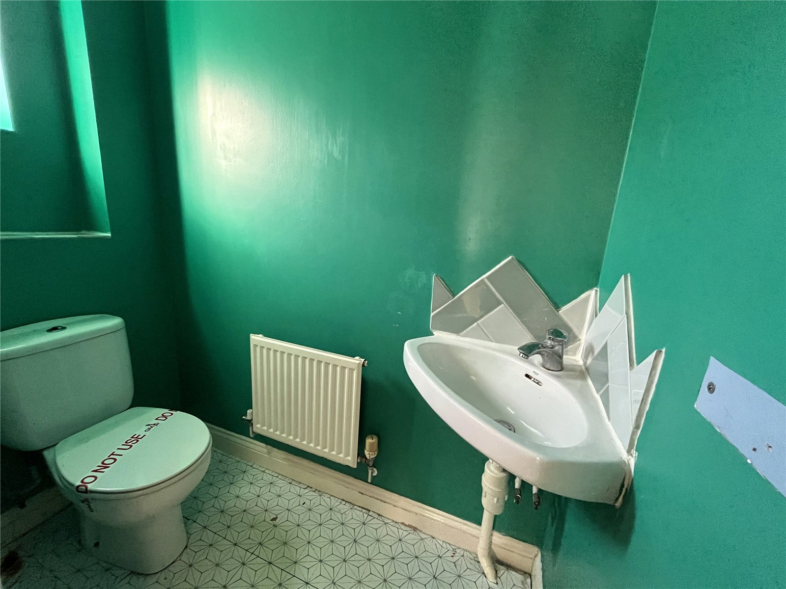 Cloakroom: With a low level WC, washbasin, radiator and an obscured double glazed window to the front.