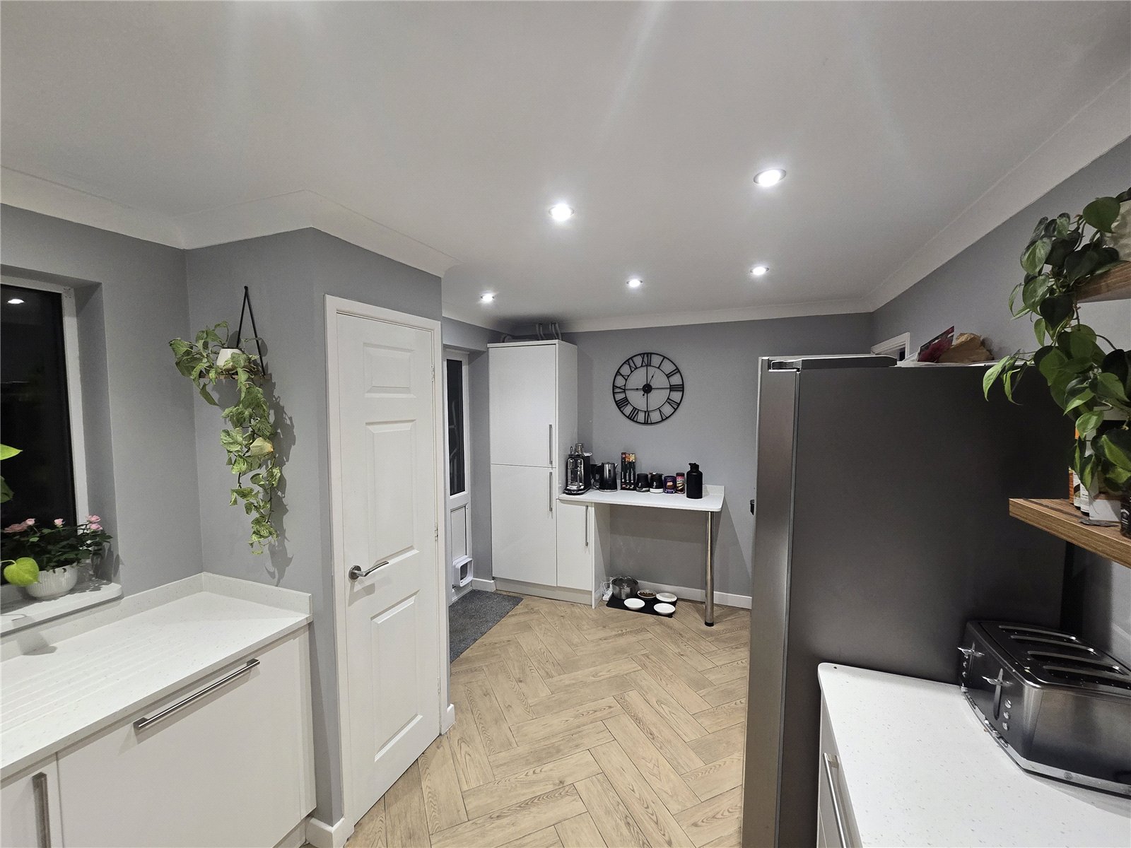 Description: This well presented two double bedroom modern house has been the subject of extensive updating work over the last four years including the replacement of the bathroom, replacement of the boiler (approximately eighteen months ago) with a Worcester Bosch combination unit and the kitchen with a comprehensive range of white high gloss fitted units incorporating an electric oven, induction hob, dishwasher and washing machine. The property has a large block paved driveway to the front providing parking for three cars in addition to a single garage to the rear.