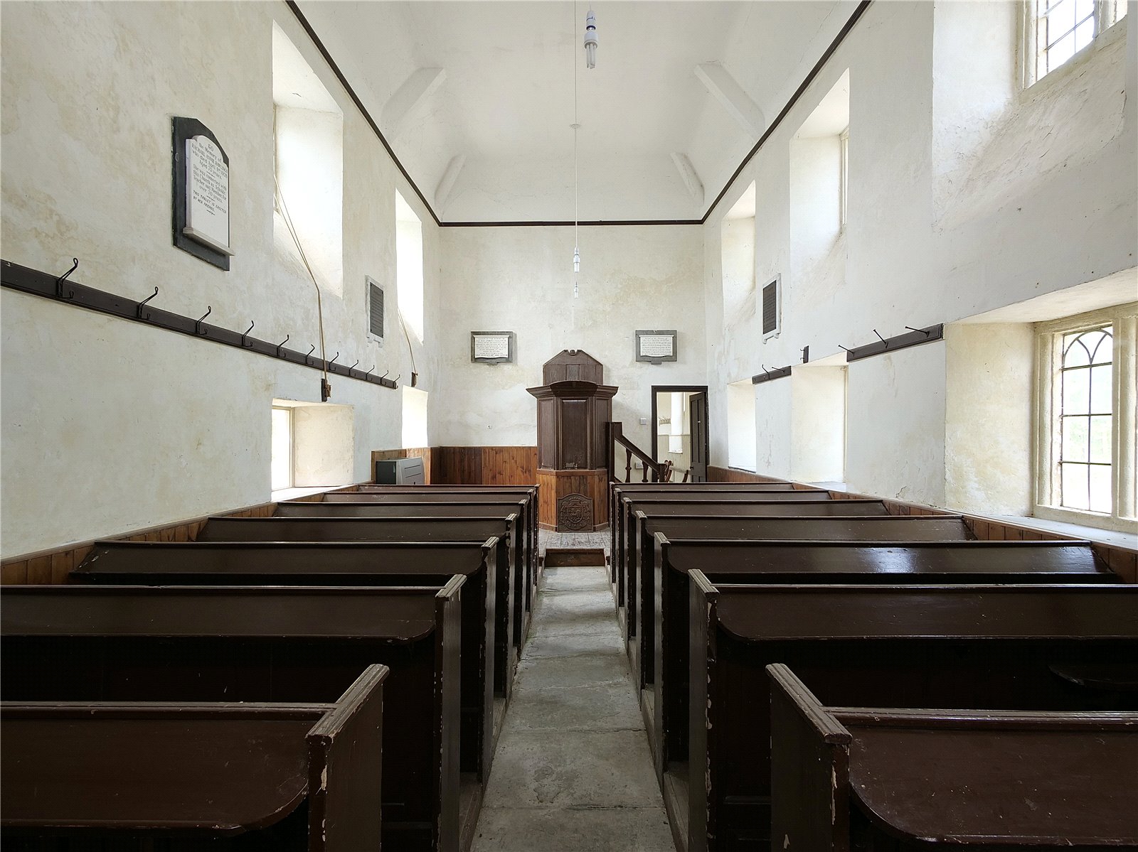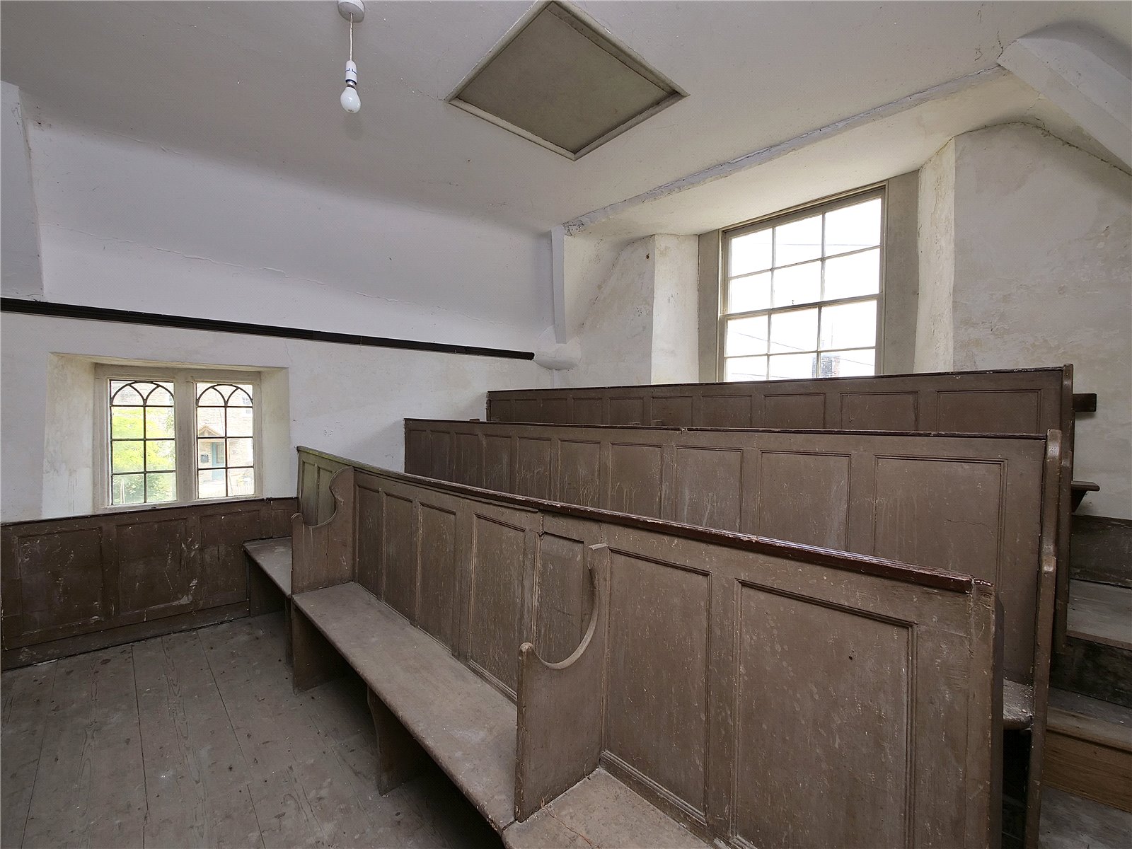 The former Georgian parlour, with its large picture window and fire place, creates the option for a cosy snug or bedroom 3. Stairs lead off the entrance to a gallery which will retain two of the oldest pews but with generous space for a desk or sofas; The perfect work-from-home space with views along the country lane.