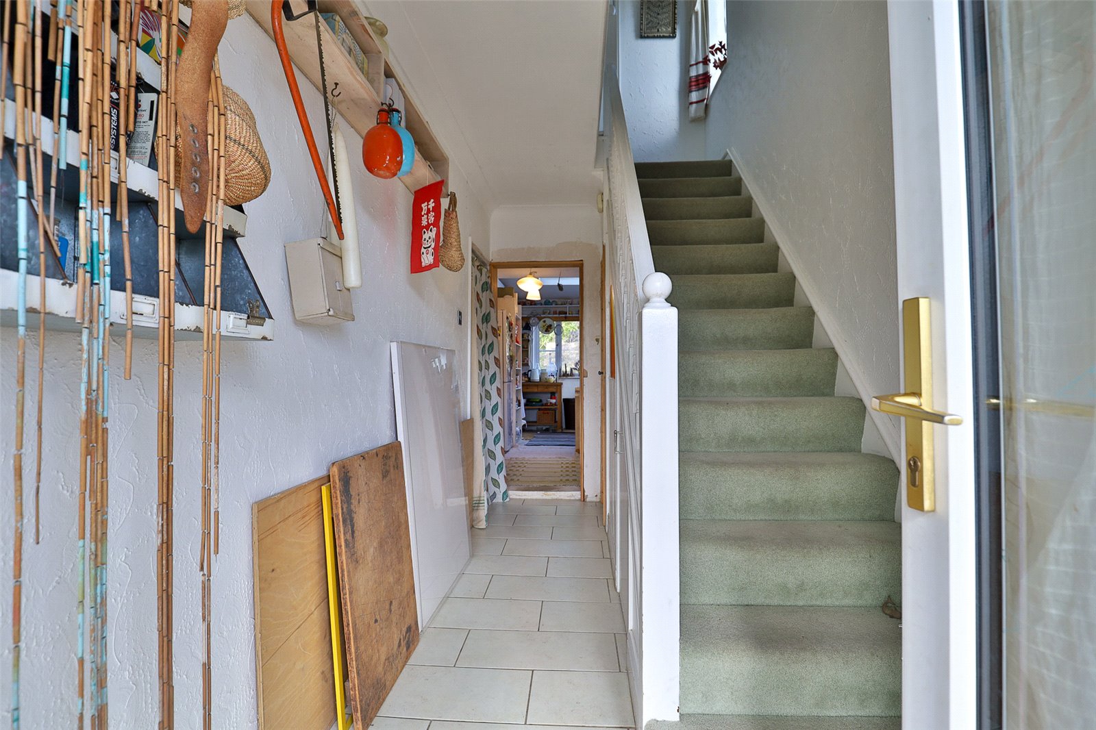 Entrance Hall: With a staircase rising to the first floor, understairs storage cupboard, storage recess and door to: