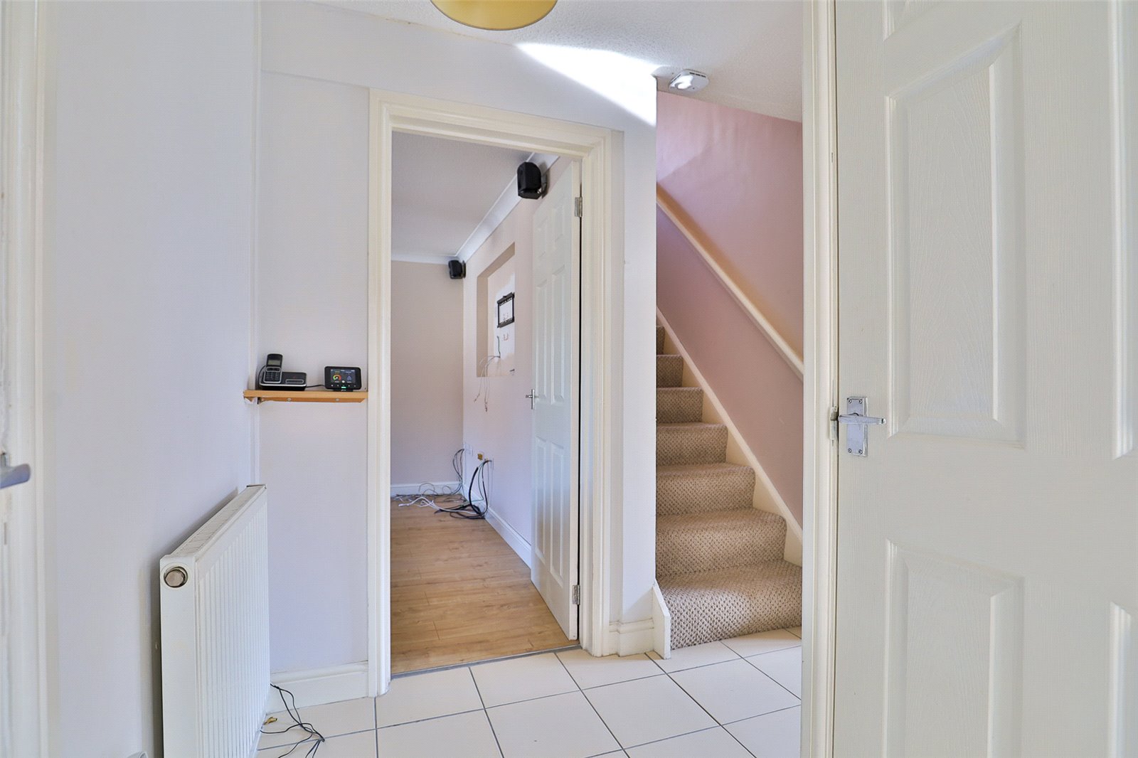 Entrance Hall: With a part-obscured glazed front door and side panel, tiled floor, staircase rising to the first floor, radiator and door to: