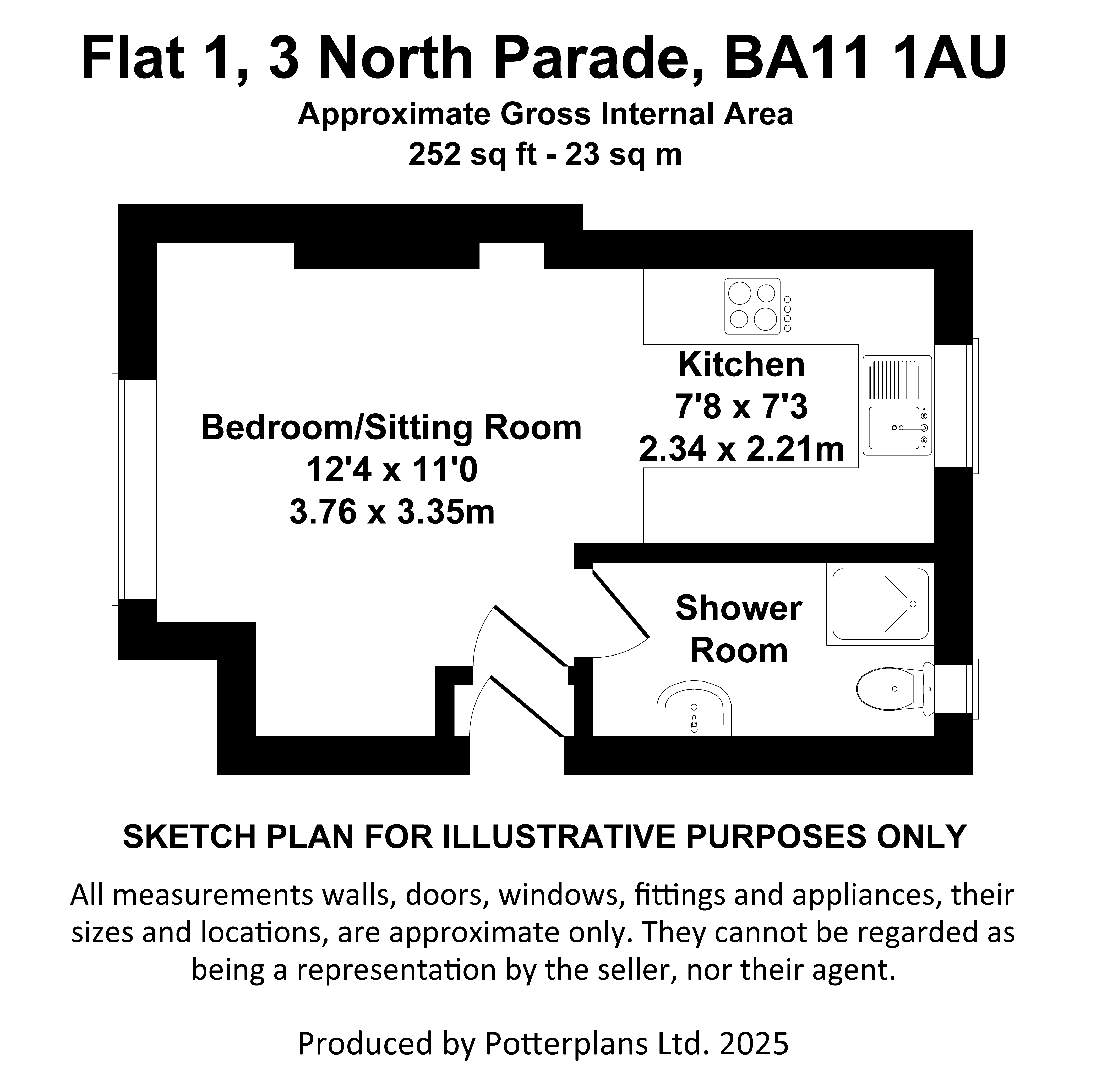 *A ground floor studio flat*Electric heating*Dual-aspect bed/sitting room/kitchen*Central Frome location.