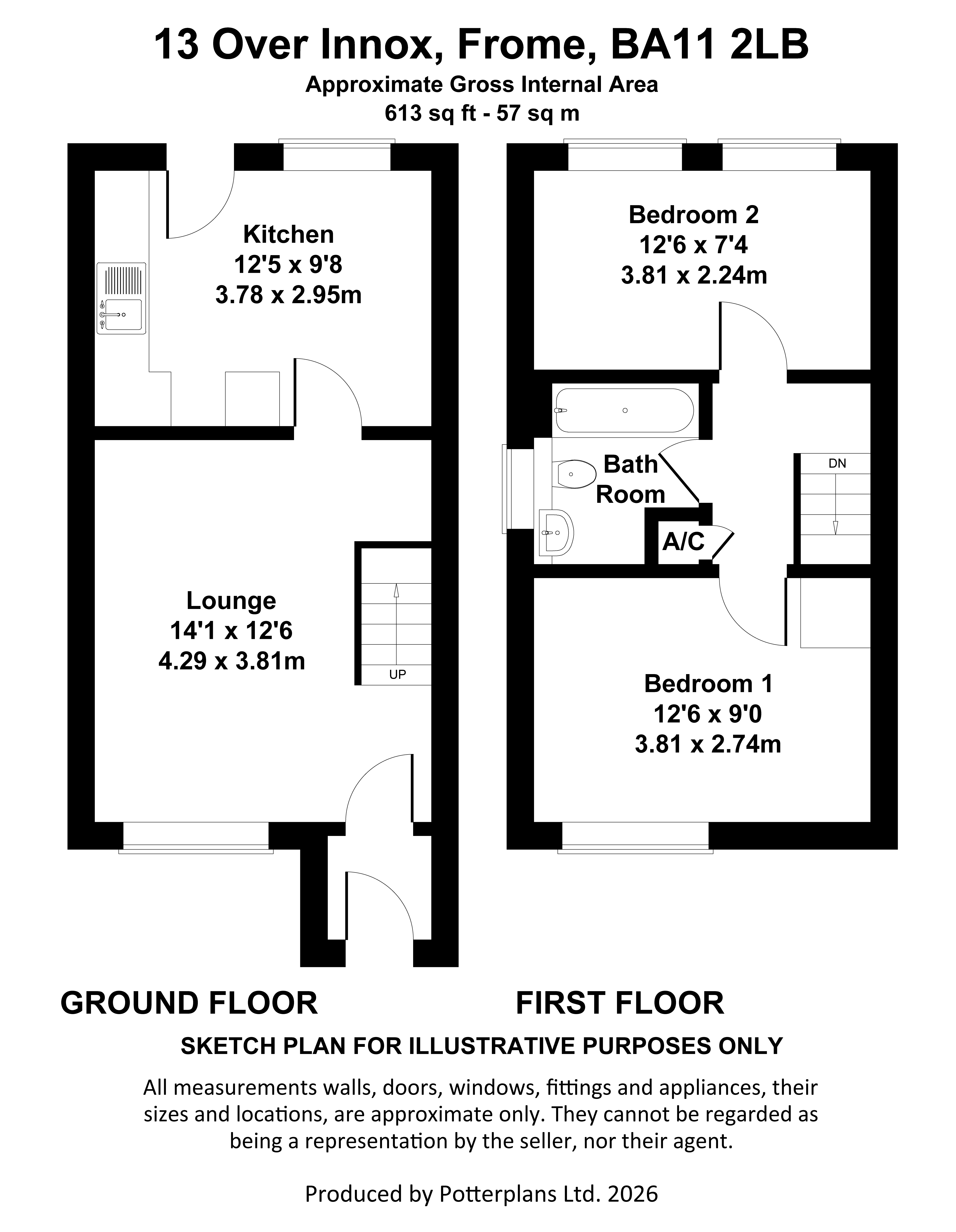 Lounge: 14'1"x12'6" With double glazed windows to the front, Dimplex electric panel heater, staircase rising to the first floor, understairs storage cupboard and door to: