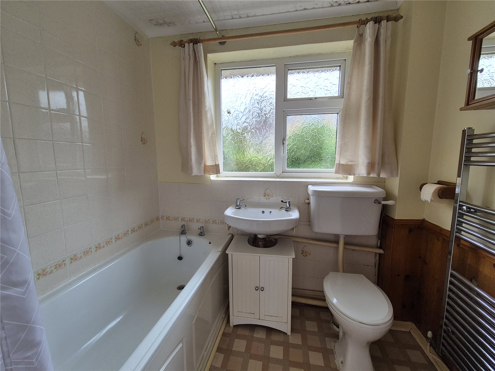 Bathroom: With a white suite comprising a panelled bath with adjacent ceramic wall tiling and an electric shower, low level WC, wash basin, chrome finish towel rail/radiator and an obscure double glazed window to the rear.