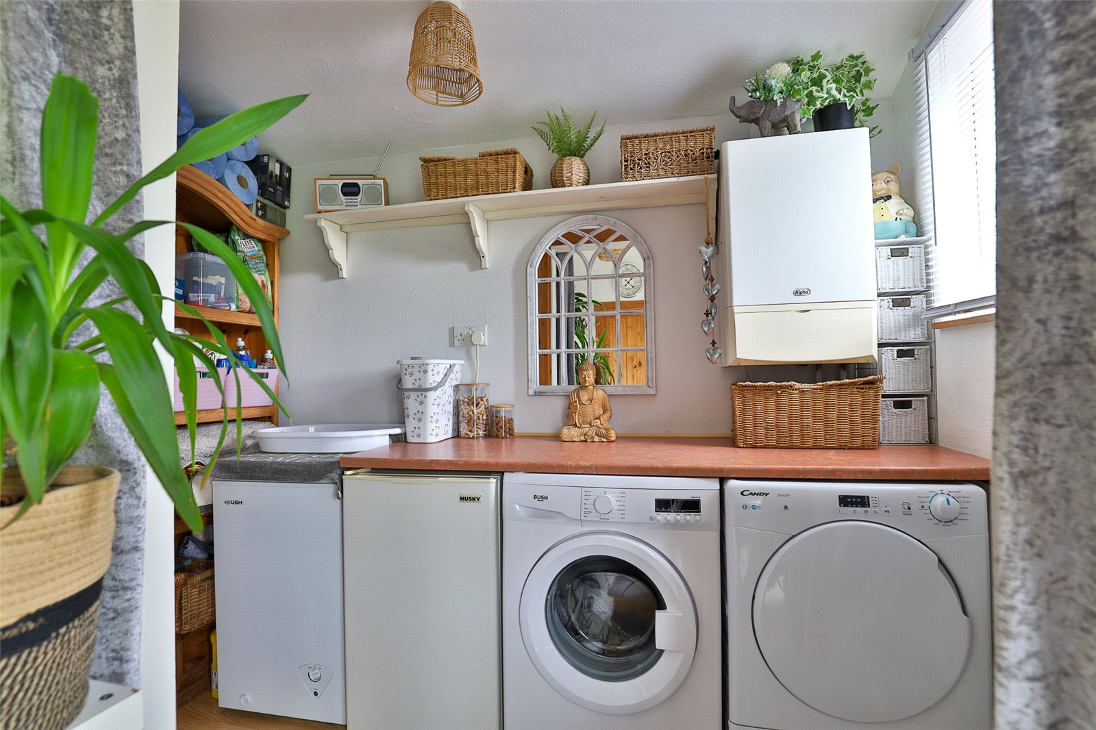 Utility Room: 9'3"x4'7" Space and plumbing for a washing machine, tumble drier, wall mounted Alpha bottled gas boiler which could supplement the central heating system .