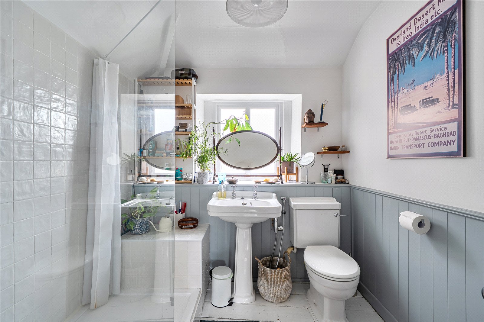 Shower Room: With a large walk-in shower enclosure with a thermostatic shower with a glazed shower screen, pedestal wash basin, low level WC, radiator, dado panelling and an obscure glazed window to the rear.