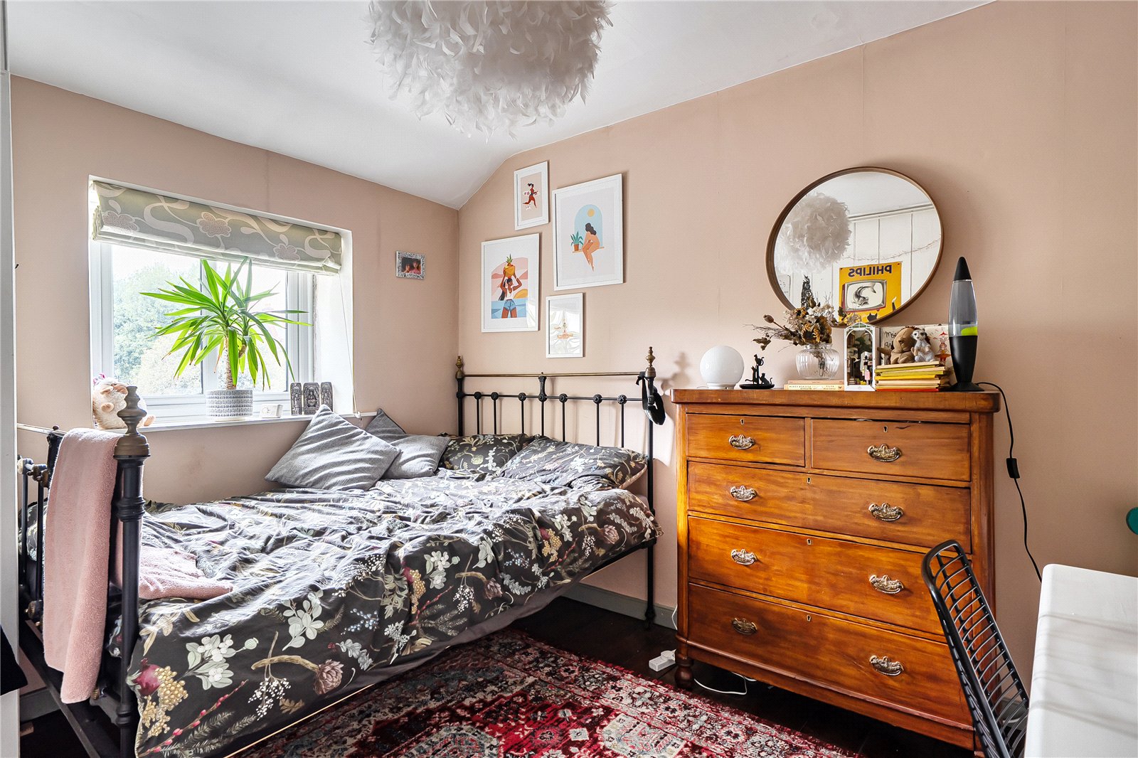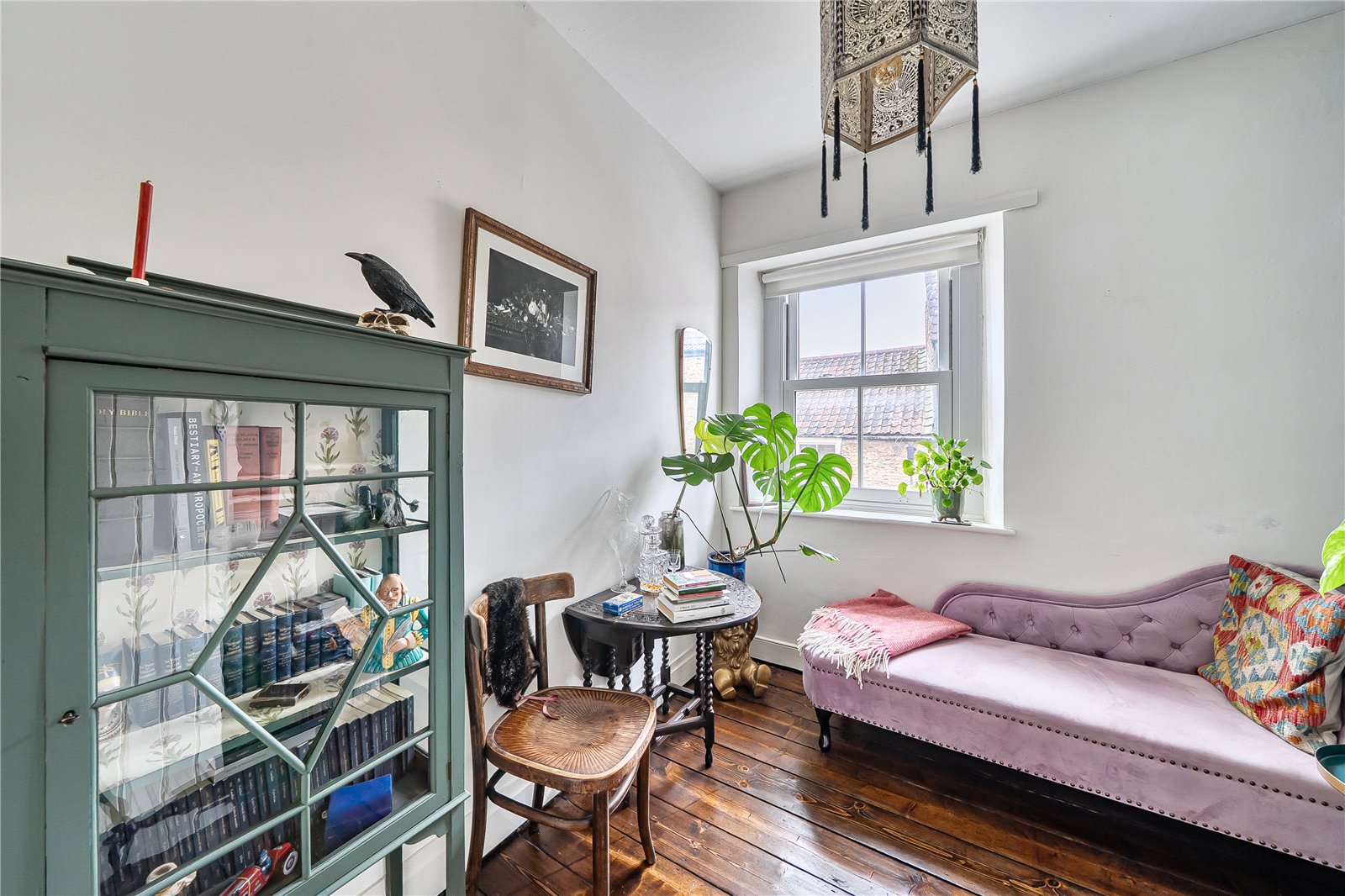 Bedroom 3: With a stripped wood floor, radiator, cast iron fireplace and a double glazed sliding sash window to the front.