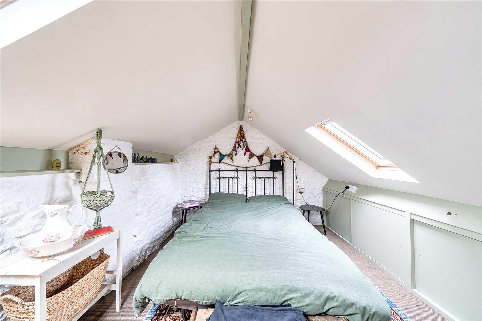 Bedroom 4: This attractive room has sloping ceilings with eaves storage and double glazed roof lights to the front and rear slope. Radiator and exposed painted stonework.