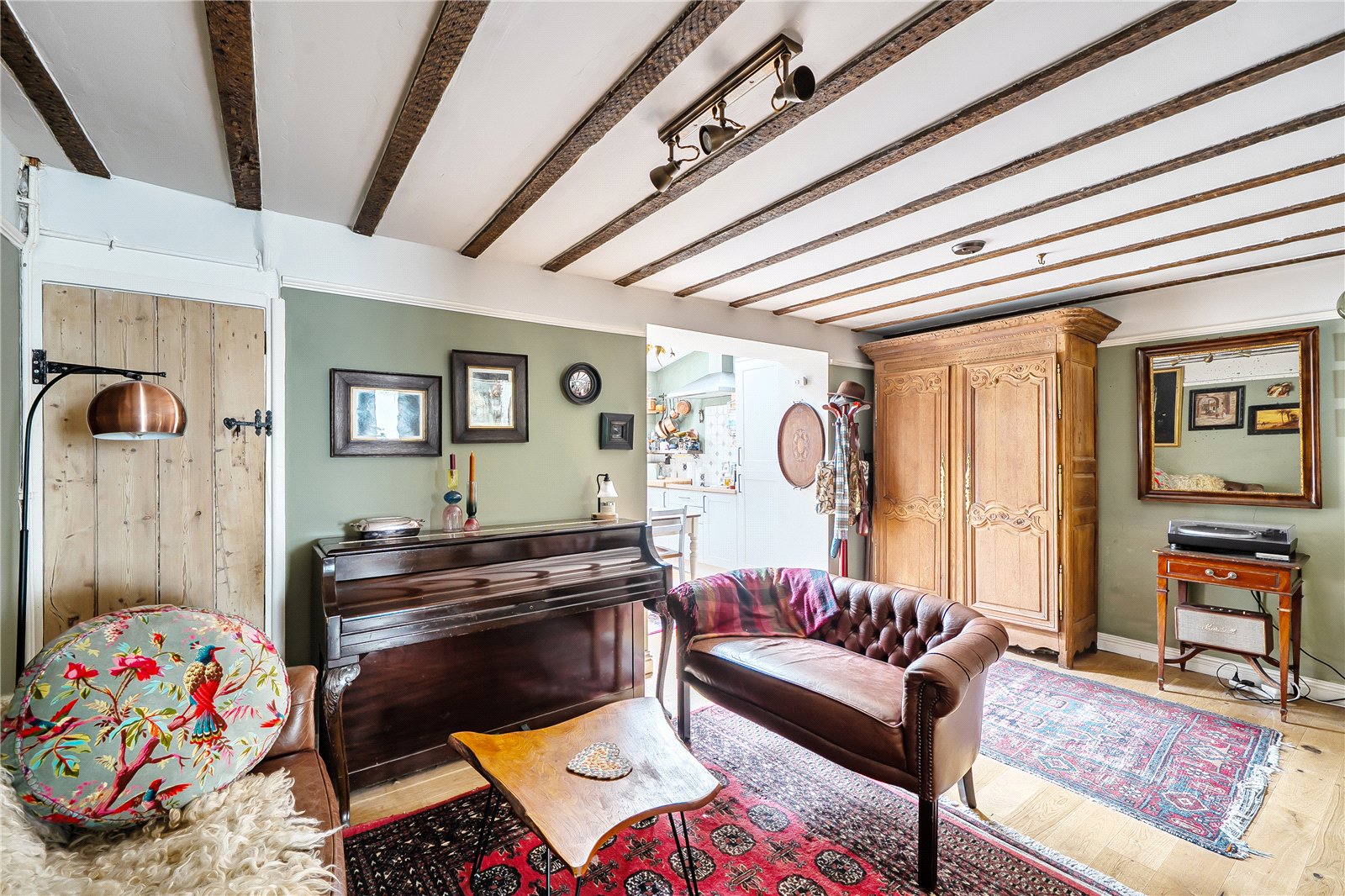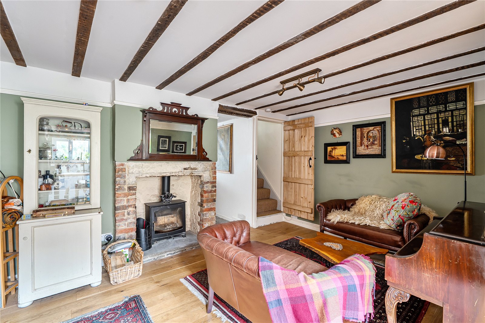 Sitting Room: With a flag stone floor, double glazed sliding sash window to the front, cupboard, understairs storage cupboard, a fireplace with brick surround and wood burning stove. Access through to: