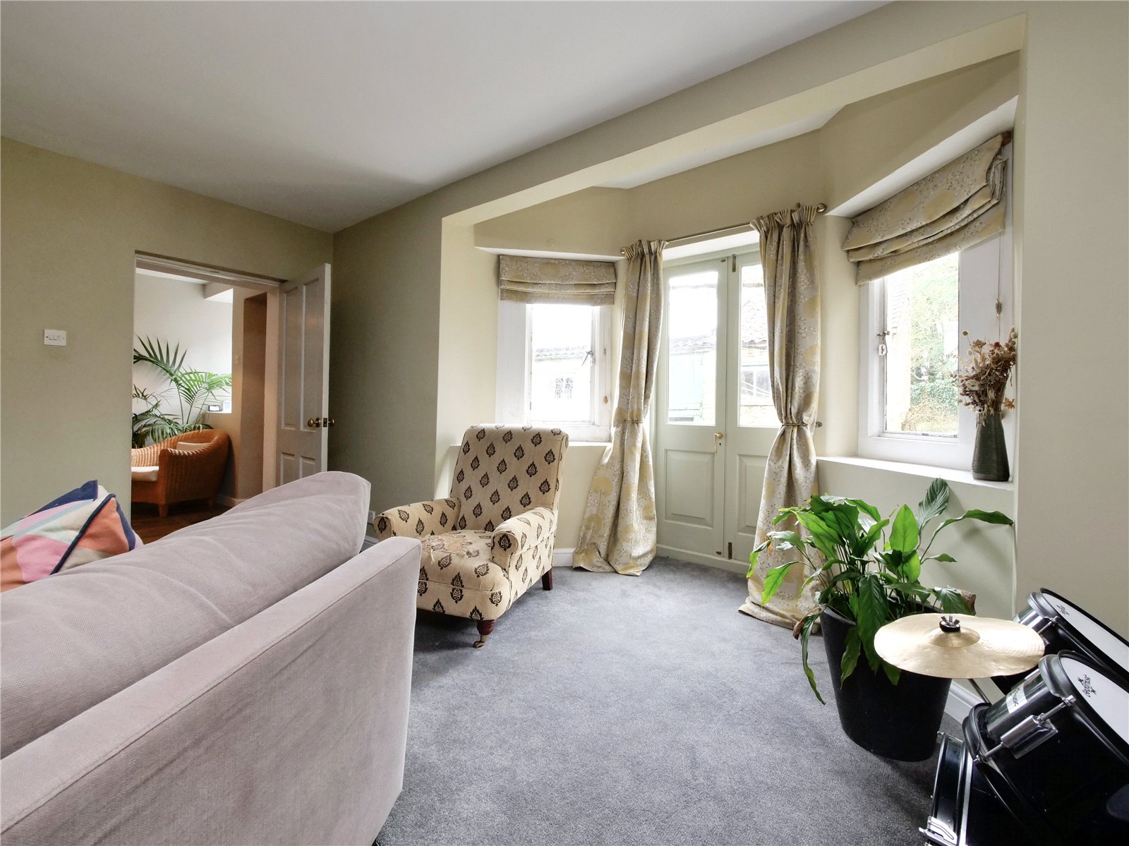 Family Room/Third Reception: 21'x10'10" average. Enjoying dual aspect with a stone mullion window to the front, further window to the side, fireplace and two radiators.