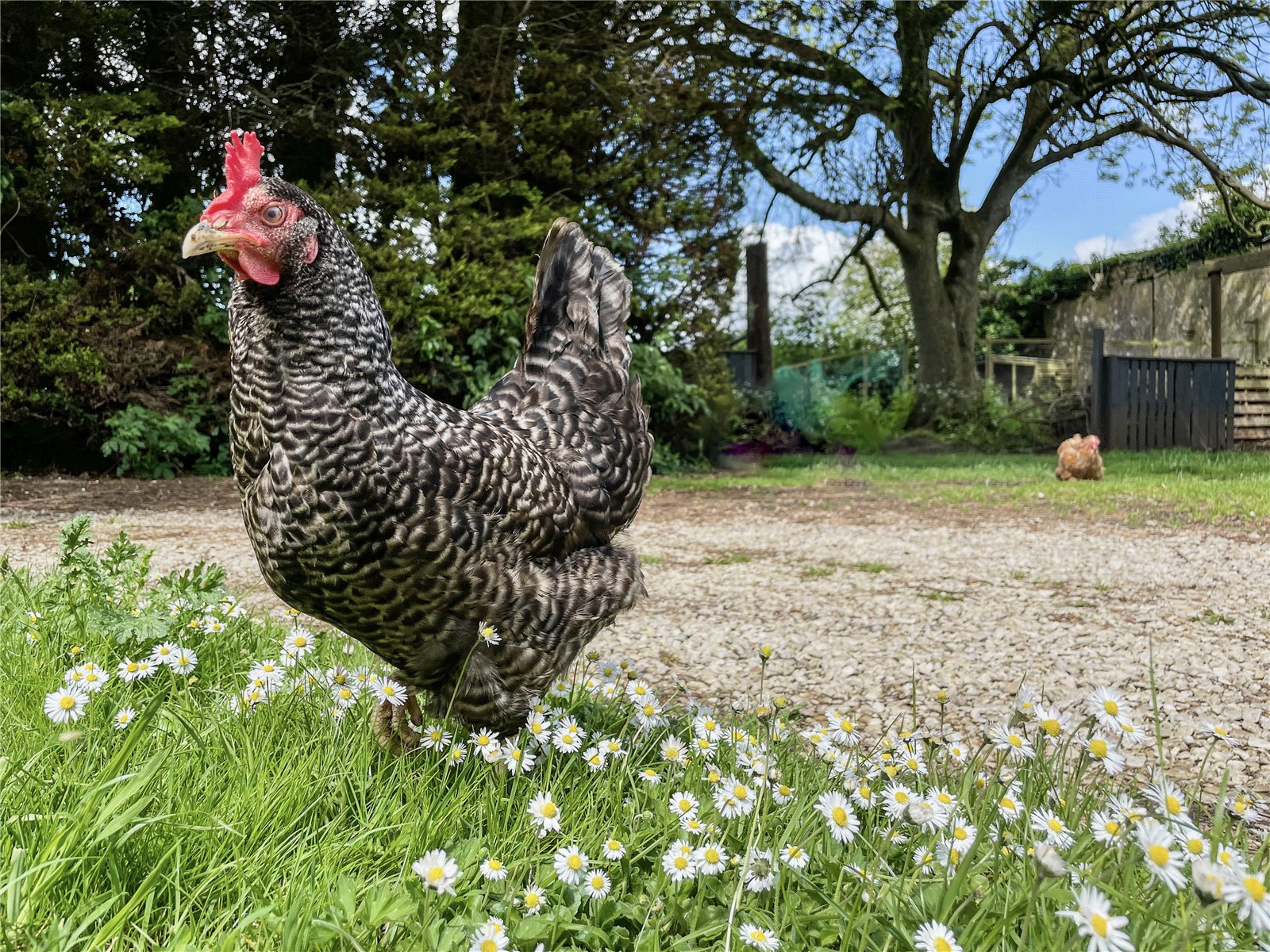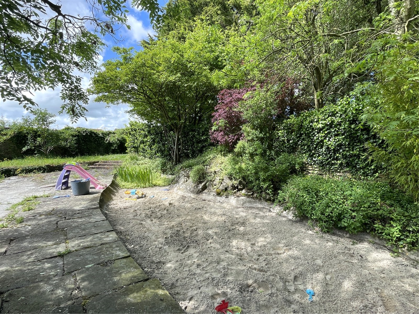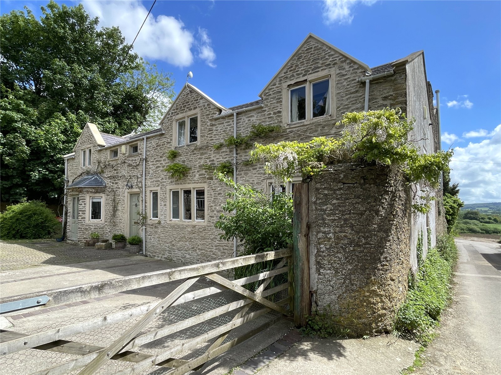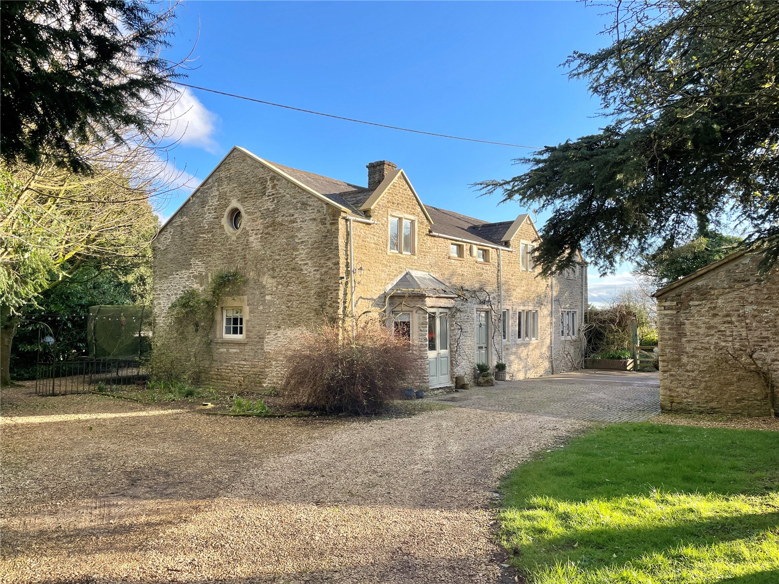 Gardens: The property is approached from a quiet residential lane, closed to through traffic, and via a gateway that leads to a sweeping horseshoe driveway with a second gateway back onto the lane. The ground amounts to approximately one acre, including the footprint on which the property is standing and incorporates a large courtyard area accessed from the back of the property from the kitchen. This extends around the side to a gravelled area with double wrought iron gates leading to the driveway and the main garden. This is laid to lawn with the footing of an old greenhouse offering a potential vegetable patch next to a carport and a separately fenced small paddock area with fruit trees and a large chicken coop, all enclosed by high stone walling. There is also a separate BBQ patio beside a 15-ft children's sandpit – an area that captures the afternoon sun all year round.