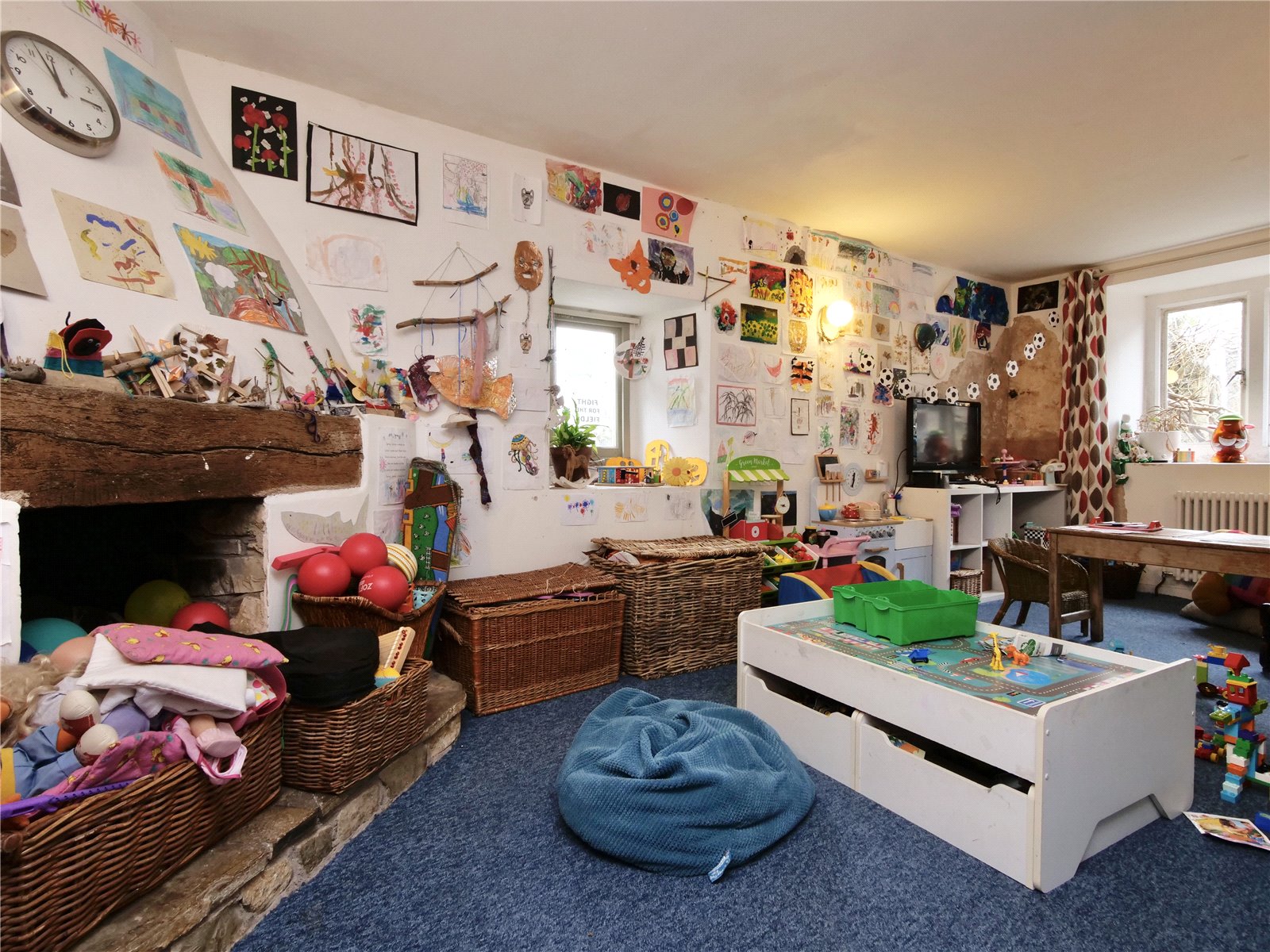 There are five double bedrooms and three bathrooms (one en suite) on the first floor. The ground floor boasts a huge kitchen with flagstone style flooring, an electric Aga, regular oven and hobs, utility sink and plenty of storage space. On the same floor is a playroom, fitted office and a large living room as well as a WC and a hallway.