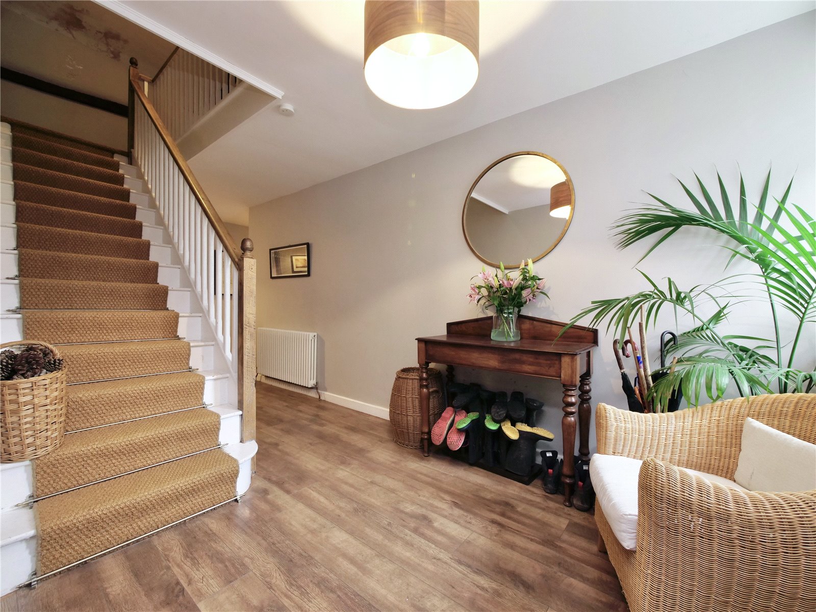 Entrance Hall: With a panelled front door, window to the side, staircase rising to the galleried landing, radiator, understairs recess and door to: