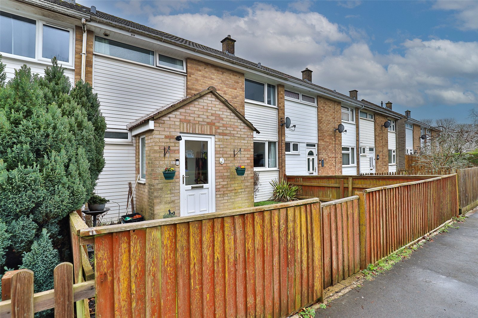 Outside: To the front of the property is an area of garden laid mainly to lawn with low timber fencing and to the rear of the property is an area of garden measuring approximately 30' in length by 21'6" in width comprising an extensive porcelain patio area which was laid only approximately two years ago, lawn and a brick built shed/store. There is a rear pedestrian access.