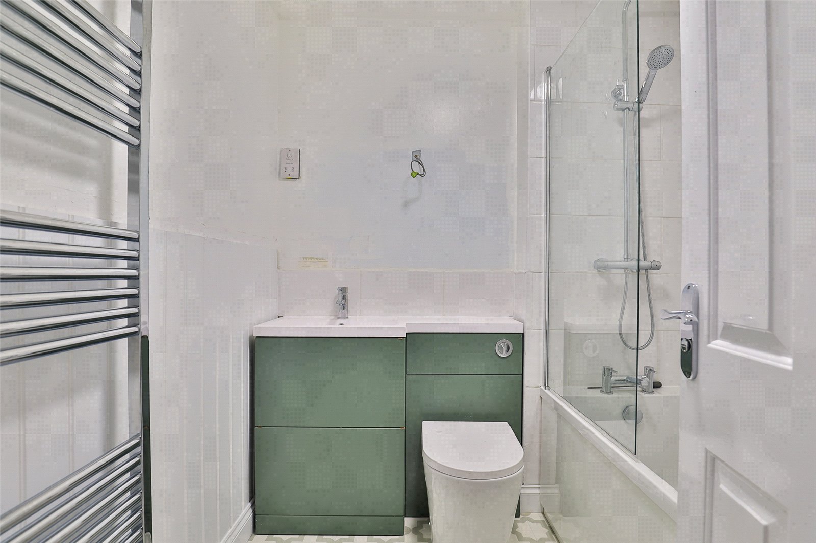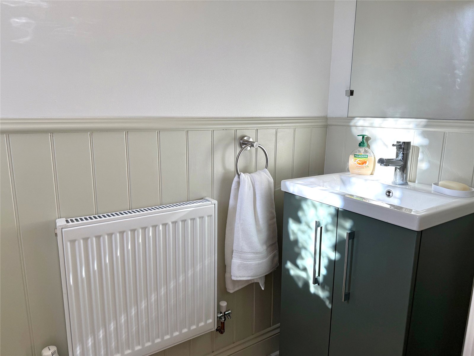 Family Bathroom: With a white suite comprising a panel bath with adjacent wall tiling, thermostatic shower, vanity wash basin, WC with concealed cistern, dado paneling and a chrome finished vertical towel rail/radiator, shaving point and mirror.