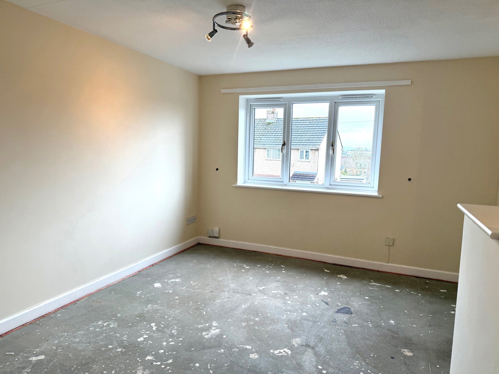 Lounge: 12' 9" x 11' 4" maximum. With double glazed window to the front, night storage heater with built in electric panel and archway through to: