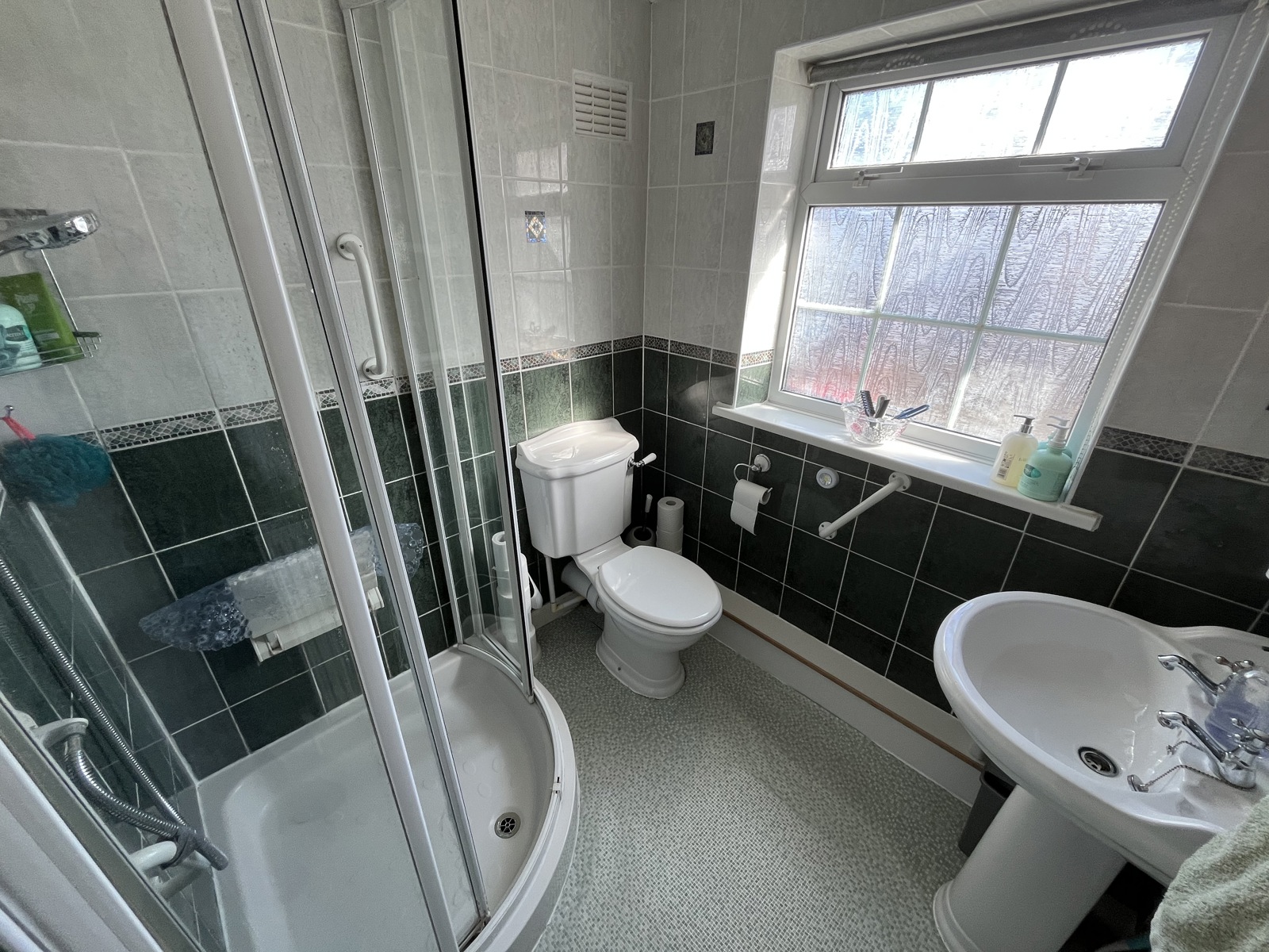 Shower Room: With a white suite comprising a corner entry shower enclosure with a thermostatic shower, low level WC, pedestal wash basin, radiator and an obscure double glazed window to the front.